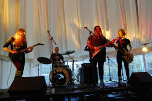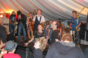 Proceedings were opened onstage by Mourning for Autumn, unburdening themselves of some deep and mystical moments, followed by Pog, Cracktown, and Wob – all of whom were interrupted to greater or lesser degrees by the power supply to the marquee – which sadly comprised one single socket, which was powering the stage, the PA, the lights, the bar, and the enormous suite of hair-dryers, curling tongs and other electrical goods all provided to ensure that Cracktown’s Silver Fox looked his best when they took the stage. We would like to congratulate the make-up girls on a gallant attempt, and would point out that given the extravagance of these preparations, it is only just that the power tripped off more times in their set than in anyone else’s. He did look rather magnificent though.