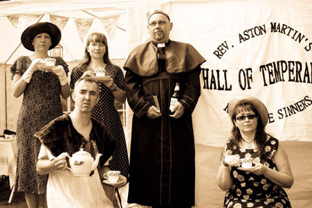 Monday is now morphing into an essential experience. Originally starting as an ‘ok we’ll sell your beer for another day if you want us to’ sort of thing to keep the rent down at the previous venue, thanks to the sterling efforts of our Fete committee it is becoming something special. Damp and grey although the day may have been, the day started beautifully with Mr Henry Lawrence, Curly & Co. and Lying Scotsmen, while the soggy trampolining continued and assorted childrens activities wound up. The Fete was set up in record time and what a blinder it was this year! The amazing Blyth Power museum, ‘What’s Inside the Horse’, not to mention the return of Ixion’s Wheel of Misfortune. This year we had a number of bring and buys, a book stall and the astonishing ‘Mystic Sisters’ who confounded and amazed an assortment of rubes and suckers into parting with hard cash by some fiendish means known only to themselves. Brilliant work everybody. This was the third time the Fete has run and it gets better every year. Special thanks as well for the ‘Bust a Brick’ sideshow, where gleeful punters got to shoot stones at an assortment of mobile telephones and break them for real…