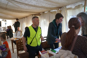 I gather there was the usual bonfires and drinking going on all night, and many thanks to our friendly woodsman for the enormous supply of, well, wood. Sadly Sunday dawned wet, and with it the unwelcome news that the toilets were misbehaving. Our janitorial staff had already had an interesting time refilling the water supply for the sinks the previous day, but 7am Sunday greeted our yellow-clad heroes with the news that the Ladies was not flushing. Bugger. Luckily a swift call to the hire company sorted the matter and the contraption was emptied and order restored. Clearly the ‘facilities’ would have benefitted from a booked service call on the Saturday afternoon, and this is something we shall bear in mind next year, assuming we still need to hire them. Which the plan is we won’t.