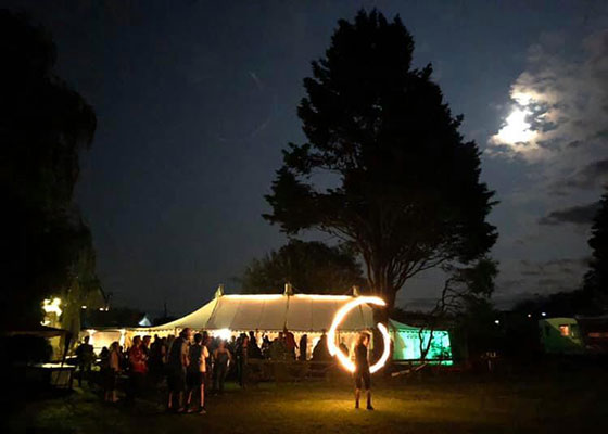 After a balmy day of not worrying about the toilet running out of water the music kicked off at 6pm with the usual galaxy of stars for the predominantly acoustic evening that customarily starts the weekend’s revels. Compered by the illustrious as ever Silver Fox, Will Gosling, Jammie Sammy and Lying Scotsman opened proceedings with panache, followed by Jerry Hellfire, whose introduction by Hugo turned into a ‘Rick Roll’ much to the delight of all those closet 80’s teenies who still cherish memories of their big hair days and secretly wished they’d done Duran Duran as well. Next year girls.