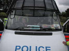 No less than three police officers of varying rank interviewed Mr. Porter that day, eager to find out who and what we were. They rather suspected we were going to be an armed camp of anti-BNP protesters, and were possibly expecting an untidy phalanx to issue forth in the direction of the frolicking Nazis at any moment, bearing brickbats and Molotovs. We were able to persuade them that this was not so, and that the worst felony they might concern themselves over from our direction was trespass on the railway tracks at the nearby Midland Railway Centre, where some fine old diesels have their home. Ashes On Fire