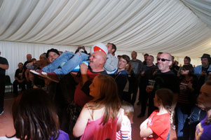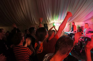 So on with the music in its myriad forms, and first up were Blyth Power with the matinee performance for those parents who had been on duty the night before and did not have the benefit of a large table at the back of the marquee to hide their children under. Perhaps we should extend this facility next year? Thanks to the choir for a splendid performance onstage with us, and to Josh for joining in on the acoustic too.
