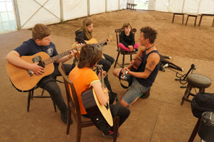 Sunday morning saw a busy schedule in the second marquee. Mr Porter was delivering a drum lesson. Mr Henry Lawrence was offering juggling workshops, and of course the choir was down to learn ‘Catesby’ for a performance that morning onstage with Blyth Power. It was marvellous – we ended up with a scratch band playing along to the choir at rehearsal, so many thanks to all who came and joined in. The whole point of this ‘get the brats to play’ business is not that we think they ought to or need to, but just that it’s nice for it to be available for them if they want to.